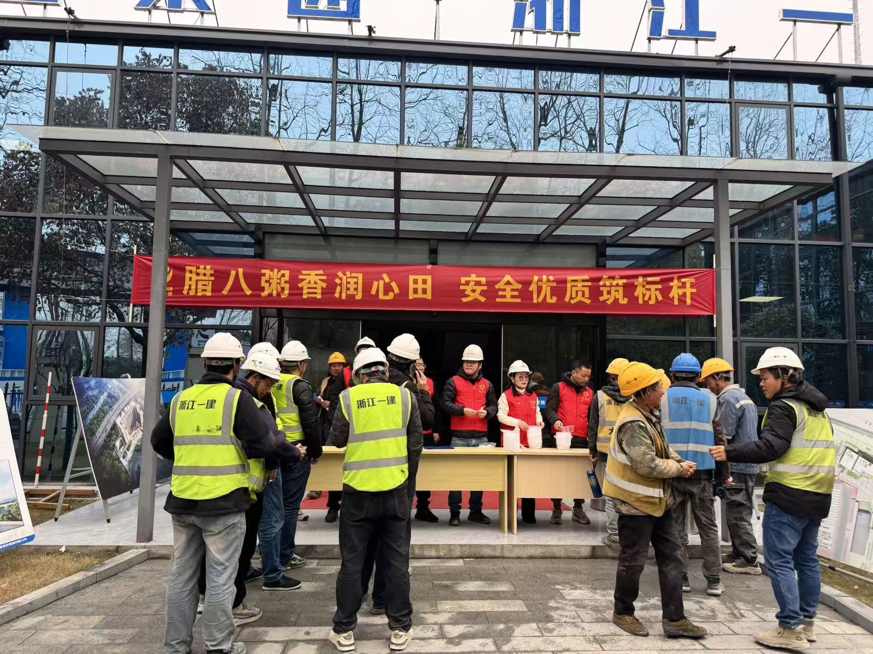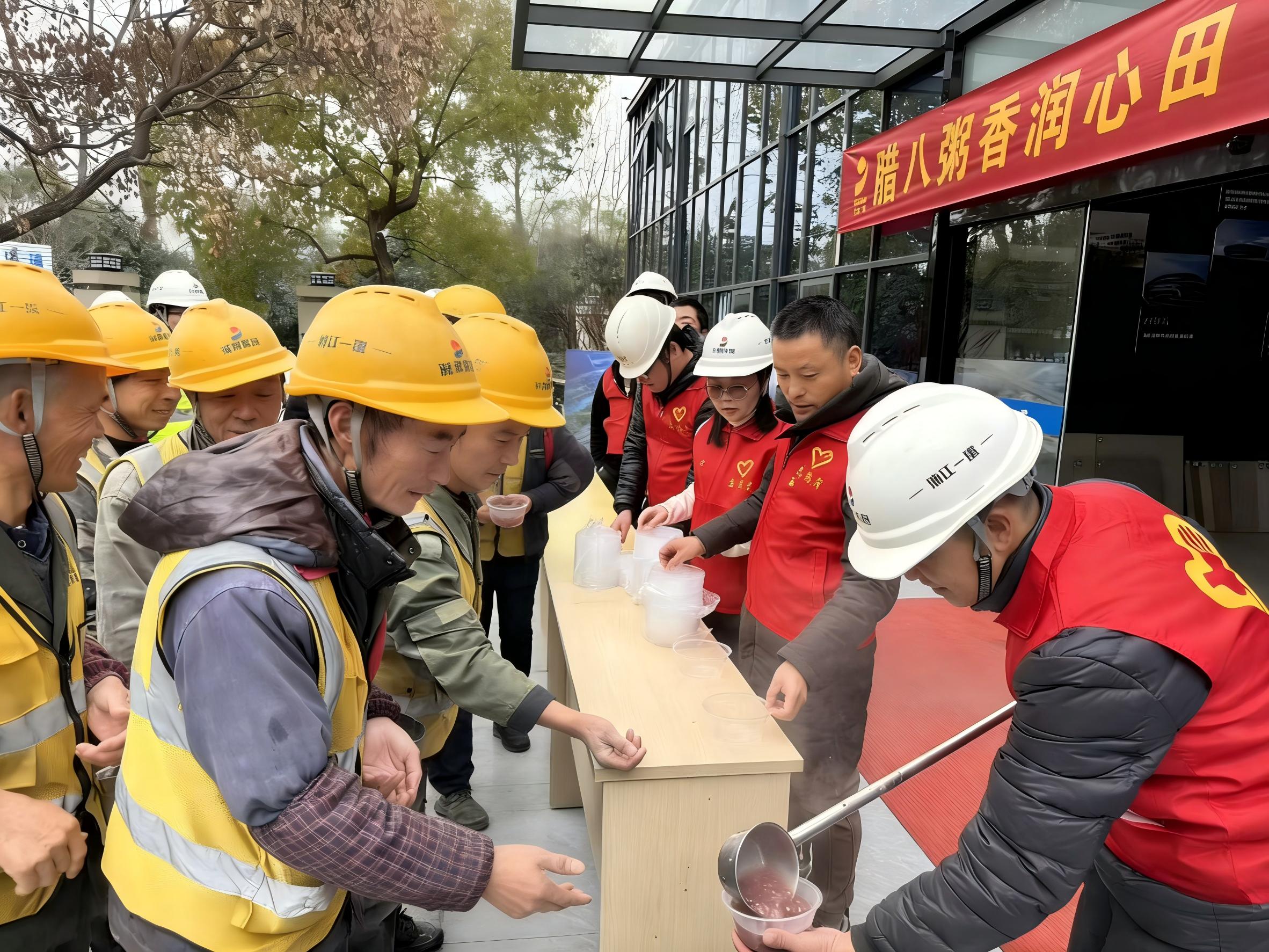 岁寒至,腊八来,1月26日清晨,下沙校区学生生活组团(二期)项目部党员同志们走进项目施工一线开展“党建同行,情暖腊八”活动,将精心熬制的腊八粥送到早早奔赴岗位的工友手中,为寒冬里坚守校园建设岗位的劳动者,送上腊八佳节的美好祝福与新春将至的暖心关怀,提前向大家致以新年的诚挚问候。